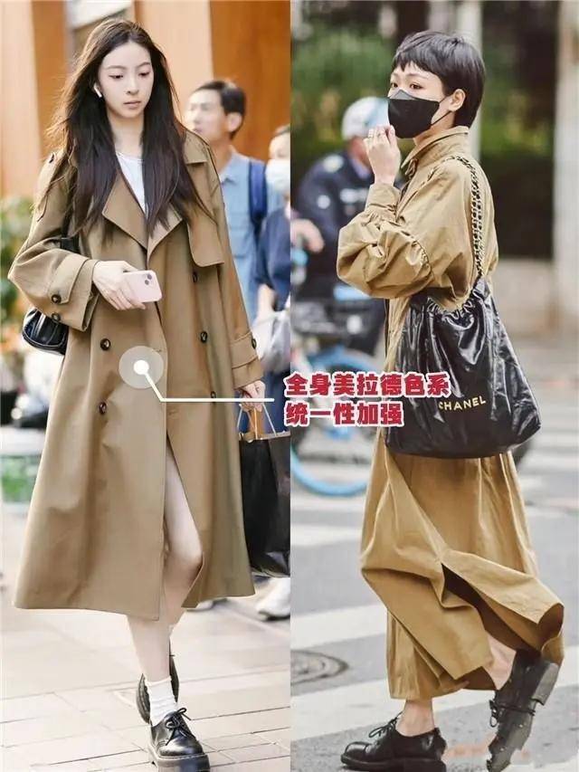 我们不光衣服可以选择美拉德色系,还可以在鞋子上下功夫,鞋子的颜色和风衣外套的颜色是属于一个色调,这时候是不是就形成上下呼应的效果?